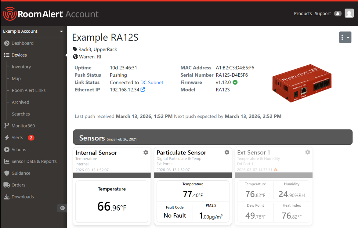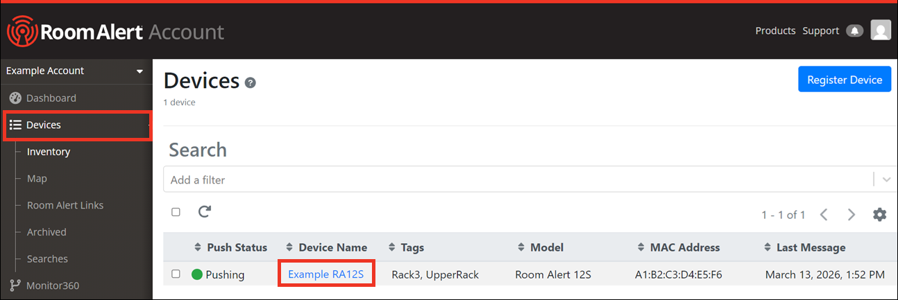 First, open your Room Alert Monitor’s Device Details page by following these steps:
