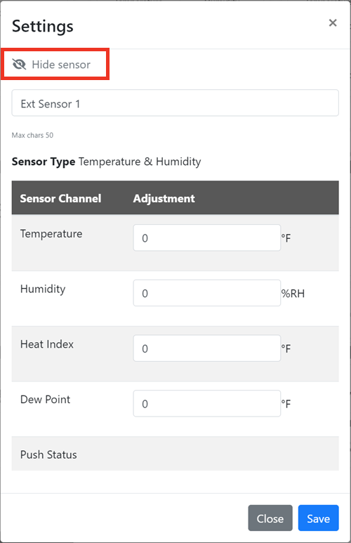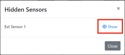 In order to hide or unhide a sensor, you must log in as an Administrator or Operator. For more information, please see the “Types of user roles” section of our FAQ, How To Manage User Access To Your RoomAlert.com Account.